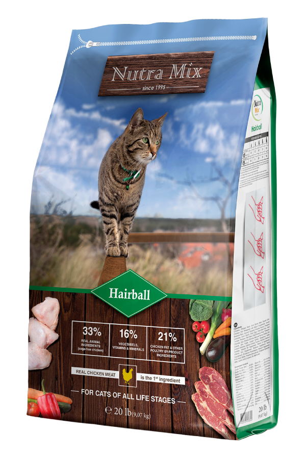 If your cat has long hair and takes good care of it, then Nutra Mix Hairball dry food with chicken and vegetable flavor is exactly what he needs. Nutra Mix Hairball is a daily food with a specially developed Hairball Control formula that controls the formation of hairballs and facilitates their elimination from the digestive tract of adult cats.