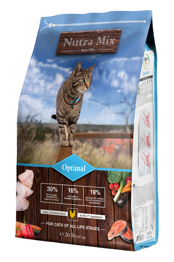 Nutra Mix Optimal is specially formulated for adult cats with moderate to high activity. The food has a pleasant taste of chicken and seafood, which is so popular with cats, even the most demanding ones. A specially developed formula with a precise balance of high quality protein and fat will ensure optimal nutrition and energy levels for your cat. The vitamin and mineral complex will take care of the proper functioning of all body systems, guaranteeing a healthy life.
